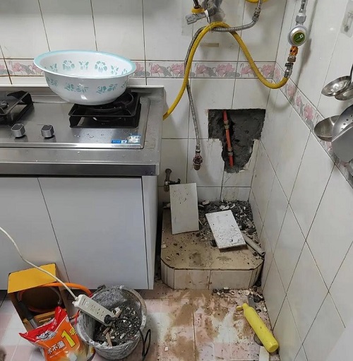 工人先会跟您一起找漏点,比如听声音,或者看哪里潮。要是管道在橱柜里,工人会把橱柜门打开,直接检查;要是管道在墙里,工人会用仪器测,找到漏点后,只凿一小片墙,把管道露出来,不会把整面墙都凿坏。